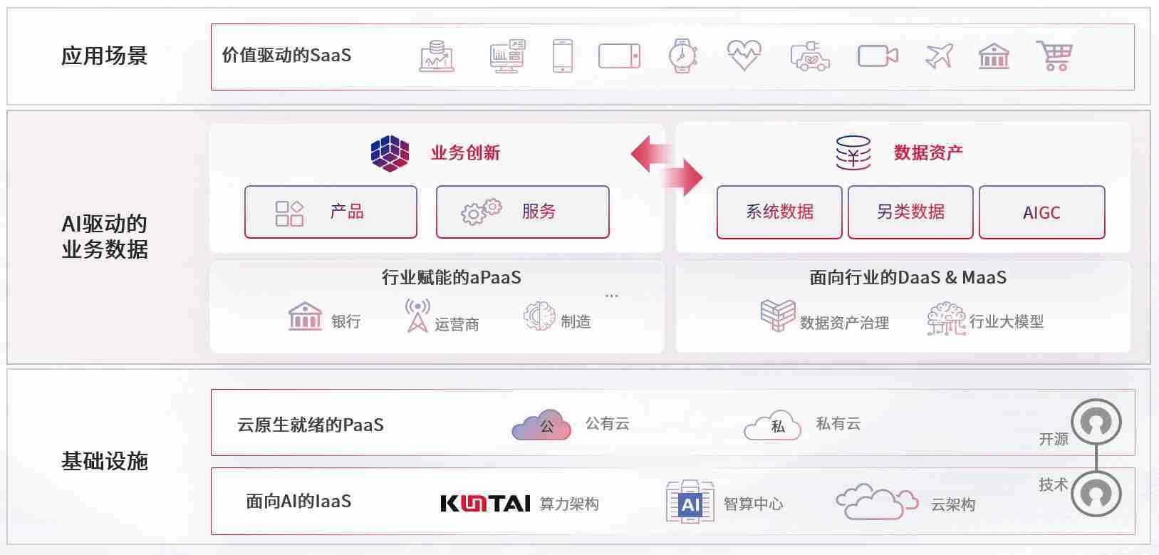 数字时代,,,围绕企业数字化转型的关键要素,,壹号平台数码开创性的提出数云融合战略和技术体系框架,,,,着力在云原生、、、、数字原生、、、、AI原生和信创产业上架构产品和服务能力,,,,为处在不同数字化转型阶段的快消零售、、汽车、、、金融、、、医疗、、政企、、、、教育、、、运营商等行业客户提供泛在的敏捷IT能力和融合的数据驱动能力,,,构建跨界融合创新的数字业务场景和新业务模式,,,助力企业级客户建立面向未来的核心能力和竞争优势,,,,全面推动社会的数字化、、智能化转型升级。。。。