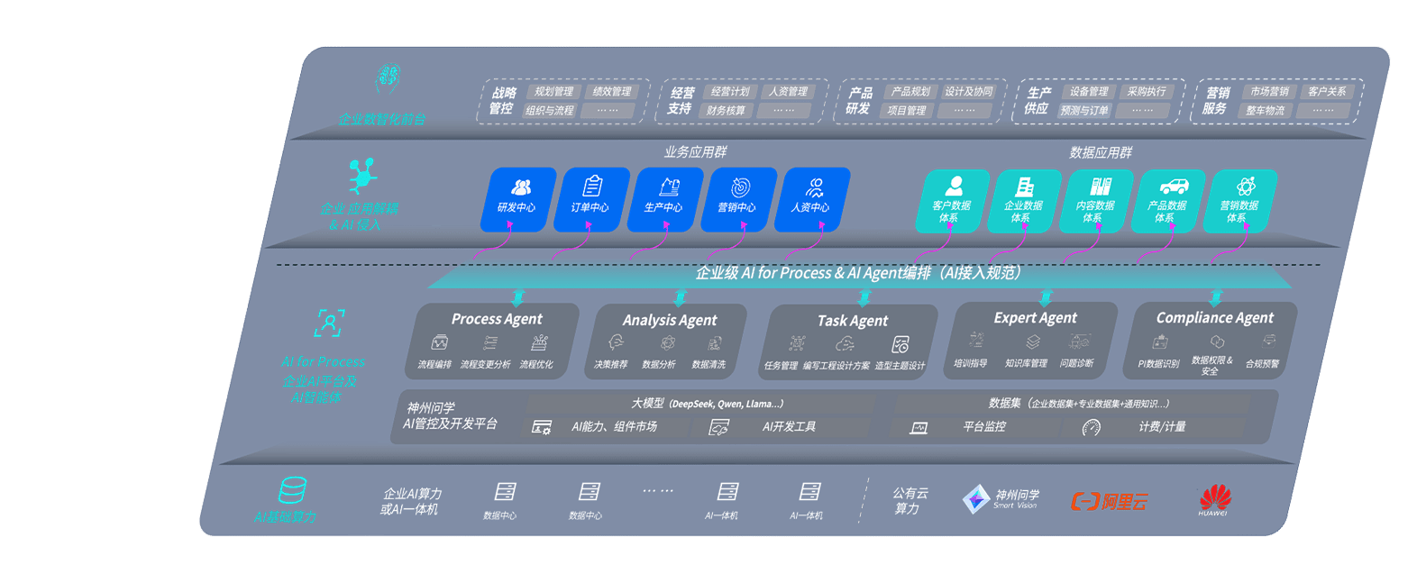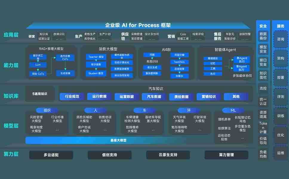 壹号平台问学智车解决方案是一套基于AI技术的汽车行业智能化系统,,覆盖从底层算力到顶层AI应用的全栈方案。。。方案由算力层、、、、模型层和应用层组成:算力层,,,,方案支持多种一体机配置,,,具备云端灵活部署、、、、多云适配以及动态优化计算资源的能力;模型层,,壹号平台问学平台版提供了企业级AI应用一站式构建与管理平台,,,支持基于后训练强化技术的汽车企业专属模型的训练、、、、评测和运营;应用层,,,壹号平台问学DeepSeek版提供包括超级员工、、智能招采、、智能营销、、、智能客服、、AI for BI等一系列解决方案,,,,可助力汽车行业实现数字化转型,,让管理更智能、、、、响应更敏捷。。。